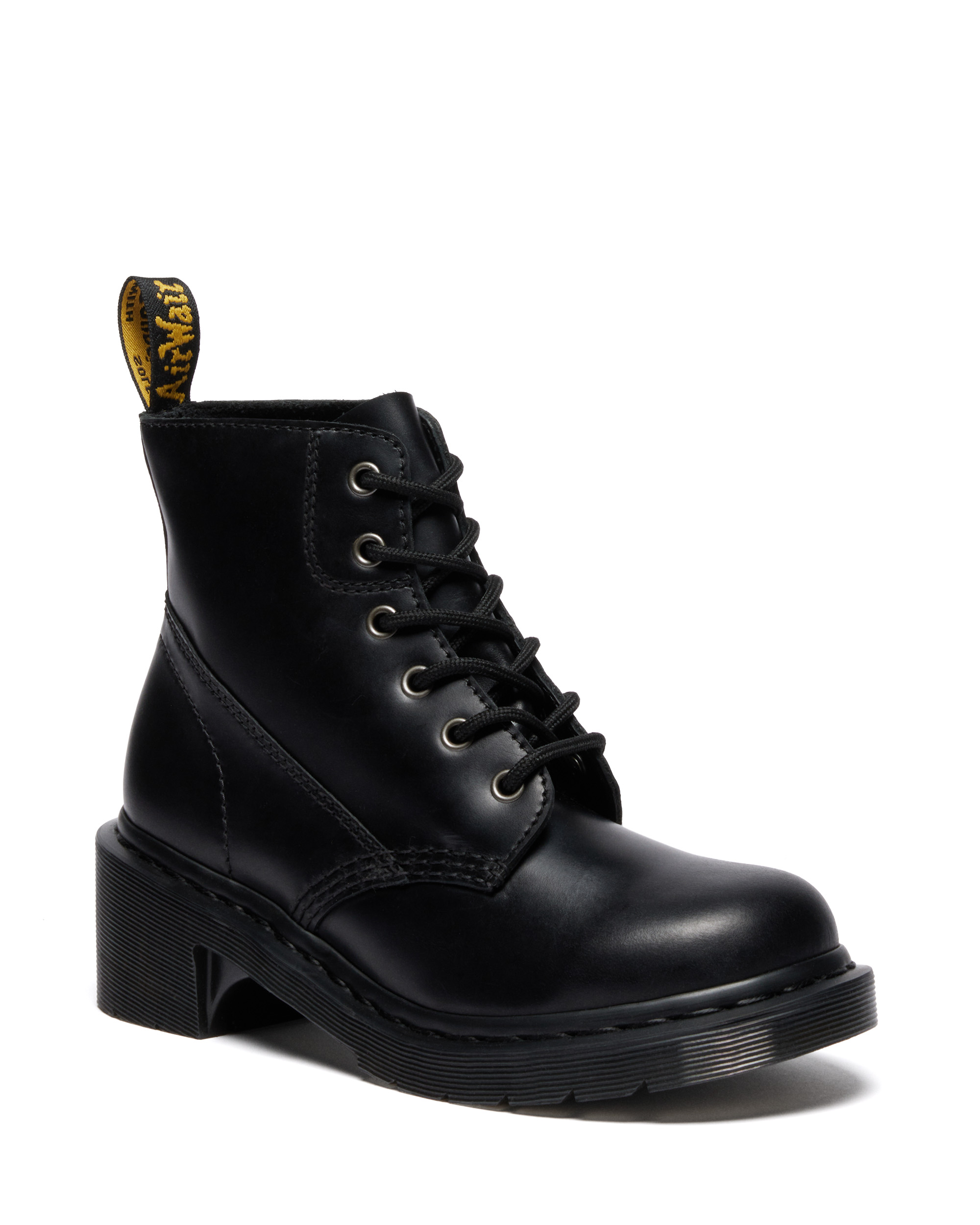 Wipe away dirt using a damp cloth. Apply a neutral or correct colored wax based shoe polish. Buff with a Dr. Martens Shoe Brush to restore shine as desired.