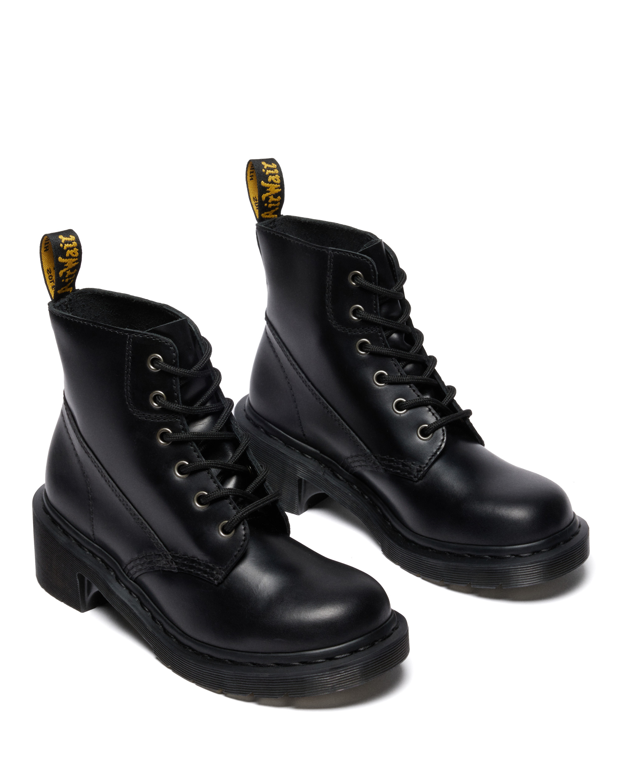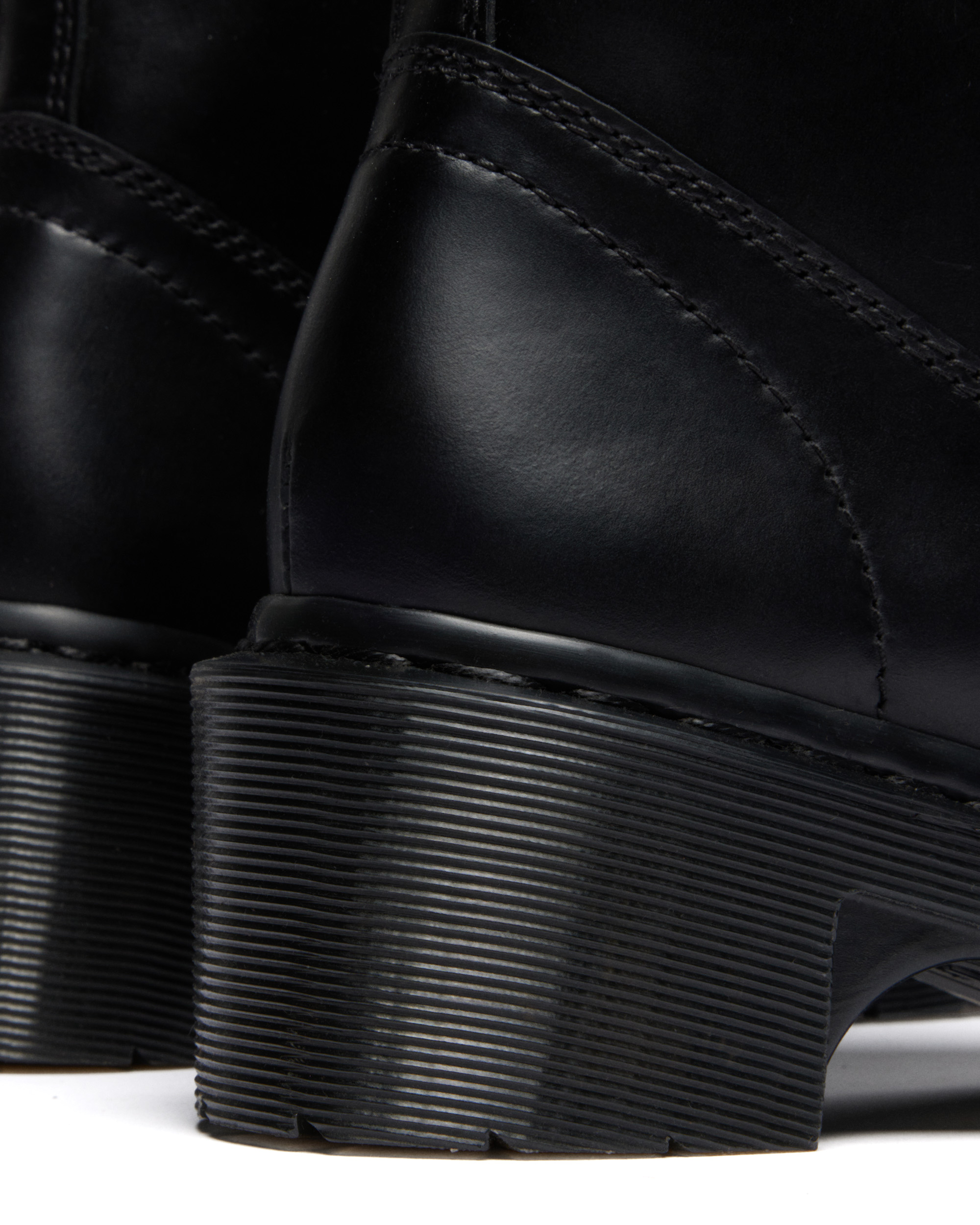 A redefinition of a classic. With lifted form and laced-up detailing, the Alderstone 6-eye boot takes on a more commanding shape. Crafted with Orleans leather that’s known for its smooth look and relaxed feel. We fitted antique silver eyelets, adding black laces and monochrome stitching. Welted with black stitching, the boot is finished with a smoke PVC outsole for extra height.