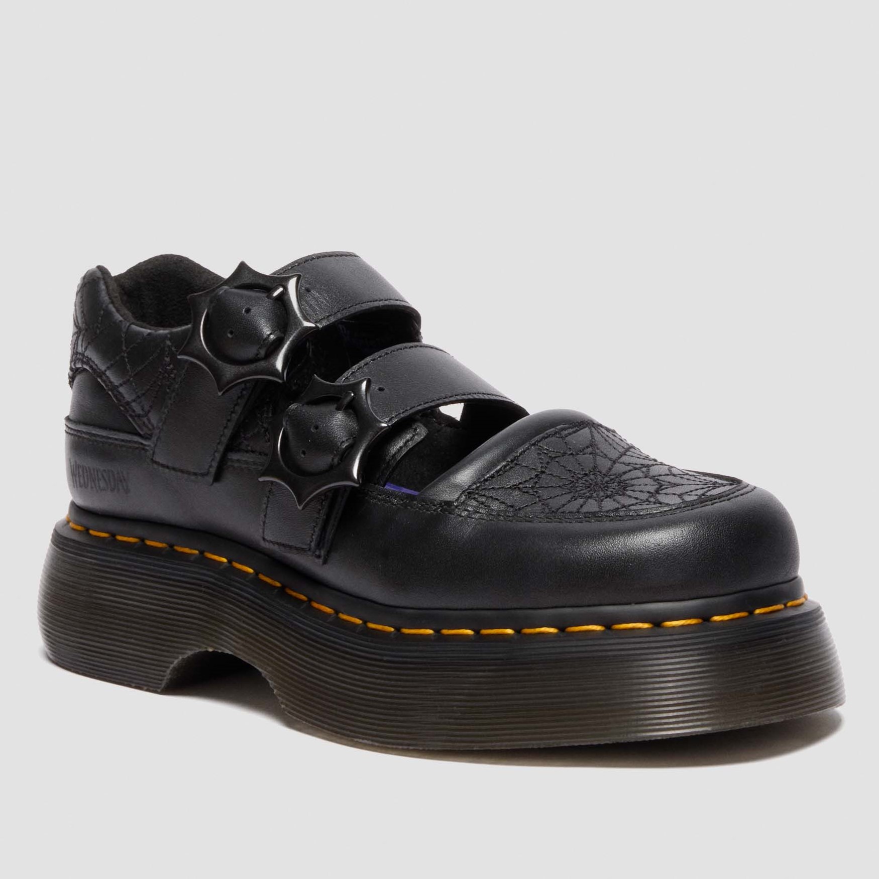 Dit limited-edition silhouet uit de DM’s x Wednesday collectie geeft een gothic klassieker een twisted edge.