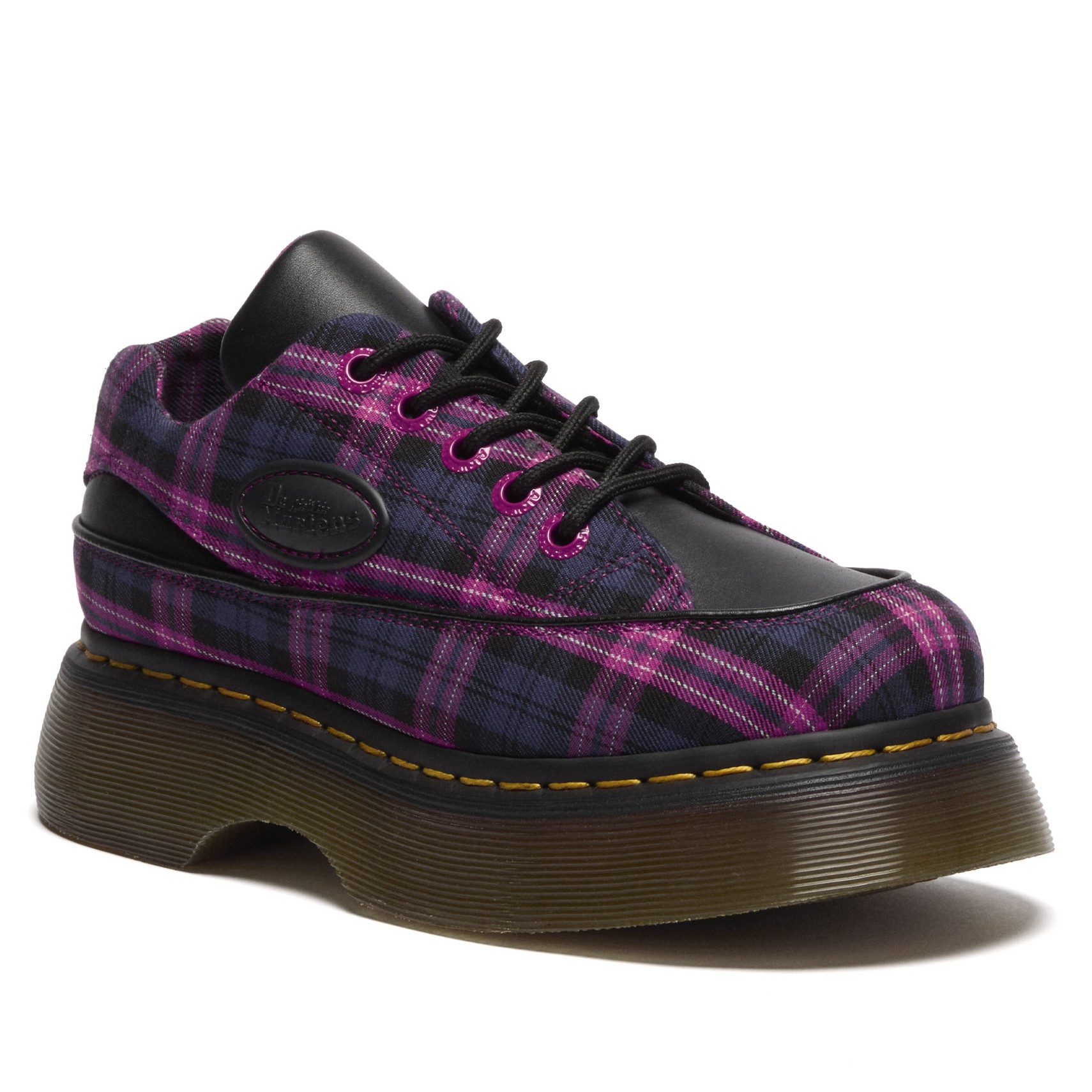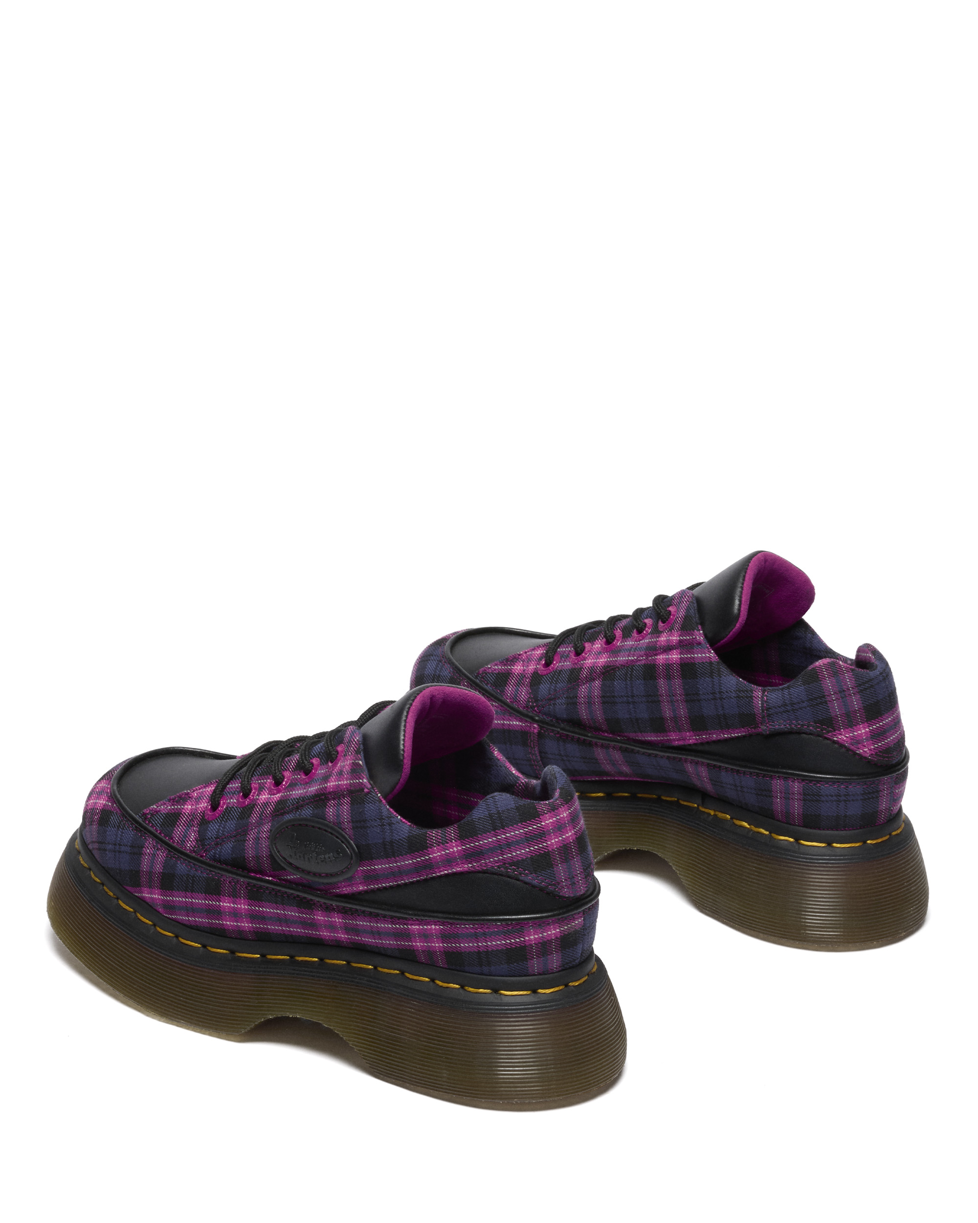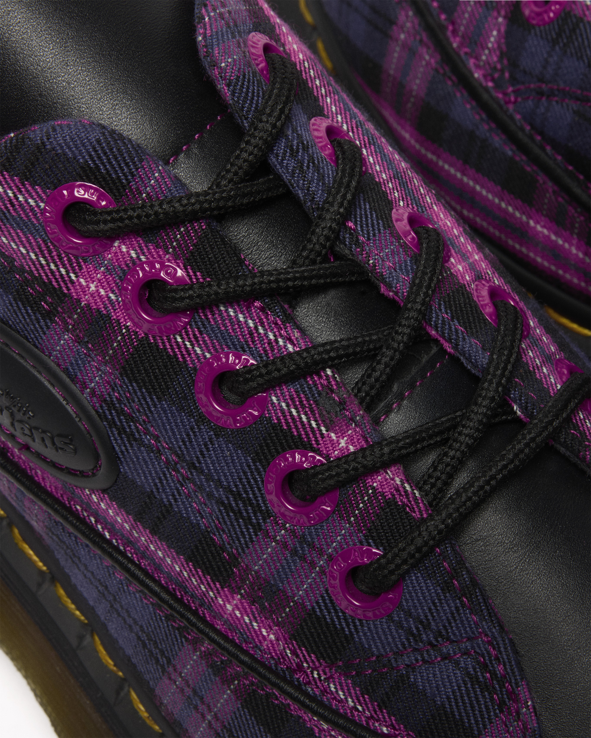 Hij is bevestigd op onze chunky afgeronde Buzz zool — gekenmerkt door DM’s groeven, gele stiksels en een bladerpatroon op het loopvlak. Het bovenwerk ius van een geweven Schotse ruit met zwartleren accenten en een gewatteerde kraag — zodat de schoen meteen zo goed zit als hij eruitziet.