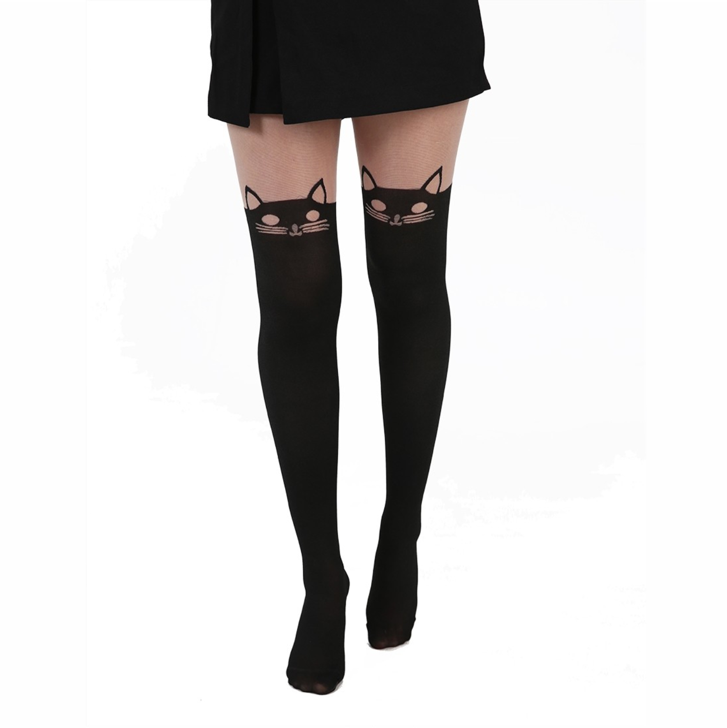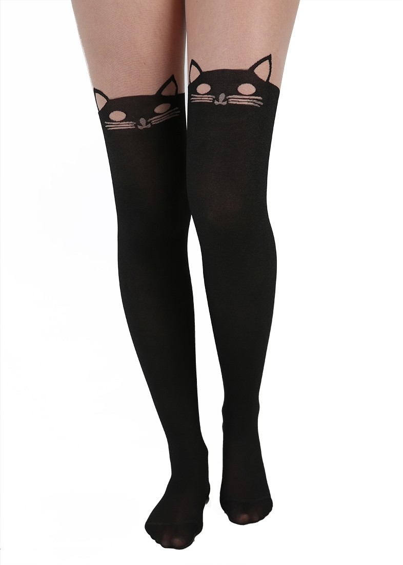 Pamela Man – Kitty Cat Over The Knee Tights Black