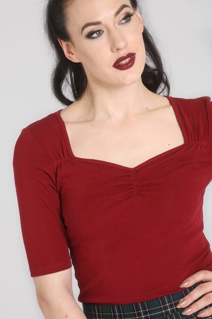 Hell Bunny: Philippa Top Burgundy
