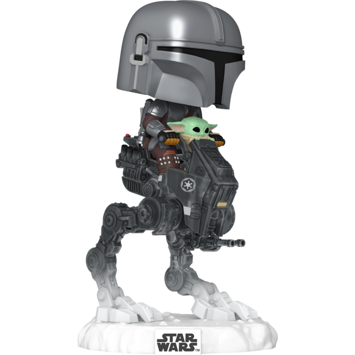 Star Wars: The Mandalorian and Grogu POP! Rides Deluxe Vinyl Bobblehead Figure The Mandalorian with Grogu in Imperial Remnant AT-RT 9 cm