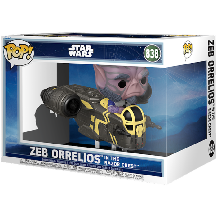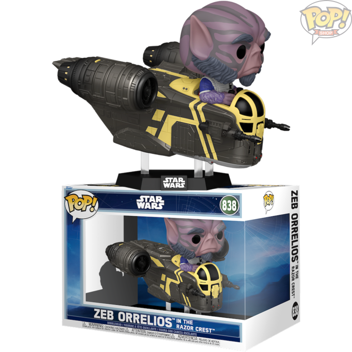 Star Wars: The Mandalorian and Grogu POP! Rides Deluxe Vinyl Bobblehead Figure Zeb Orrelios in the Razor Crest 9 cm