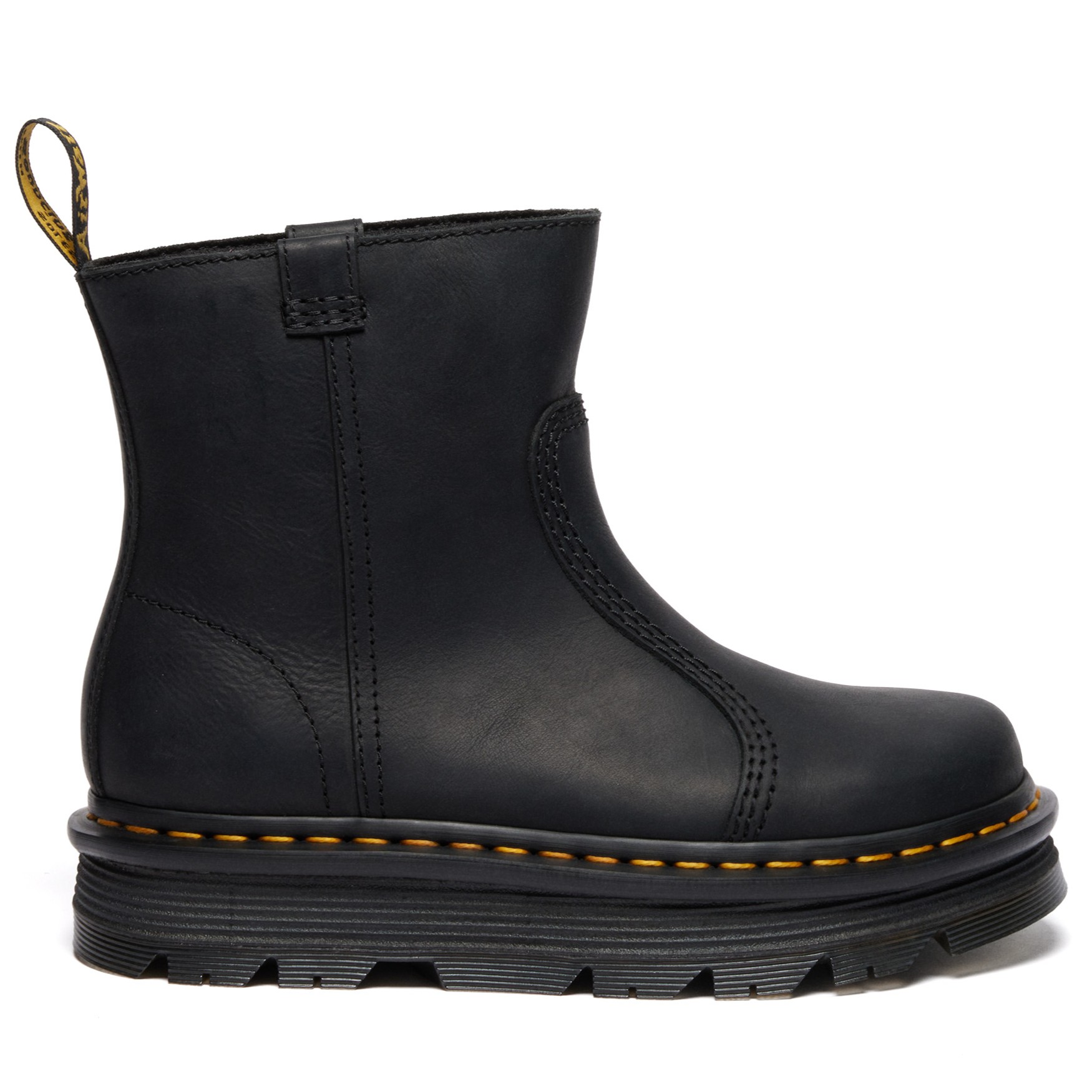 Zit gemakkelijk, loopt gemakkelijk. Onze nieuwe Zebzag Rigger laars heeft een silhouet geïnspireerd door industrieel schoeisel — makkelijk te dragen en nog makkelijker te stylen. Gemaakt van robuust Wyoming leer met treklussen aan weerszijden — zodat je ze kan aantrekken en wegwezen. De ergonomische Zebzag zool combineert lichtgewicht EVA met slijtvast PVC en brengt elke bestemming binnen voetbereik. En ons SoftWair voetbed zorgt voor extra comfort. De zool heeft opvallende DM’s kenmerken, waaronder een opmerkelijk loopvlak, overdreven groeven en onze onmiskenbare gele stiksels.